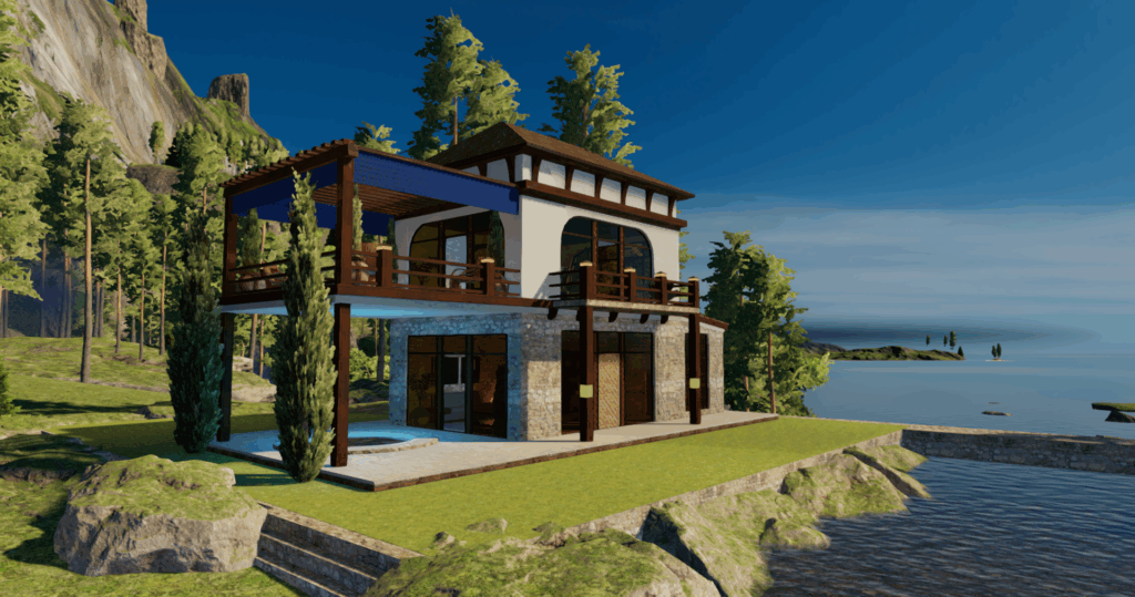 Patreons know this house as it was released as an asset to them earlier this month. Cedar & Sage is a contemporary design that sits on Tylete’s spit. It features a spacious living area both inside and out with my fav being the rockpond