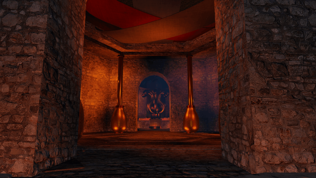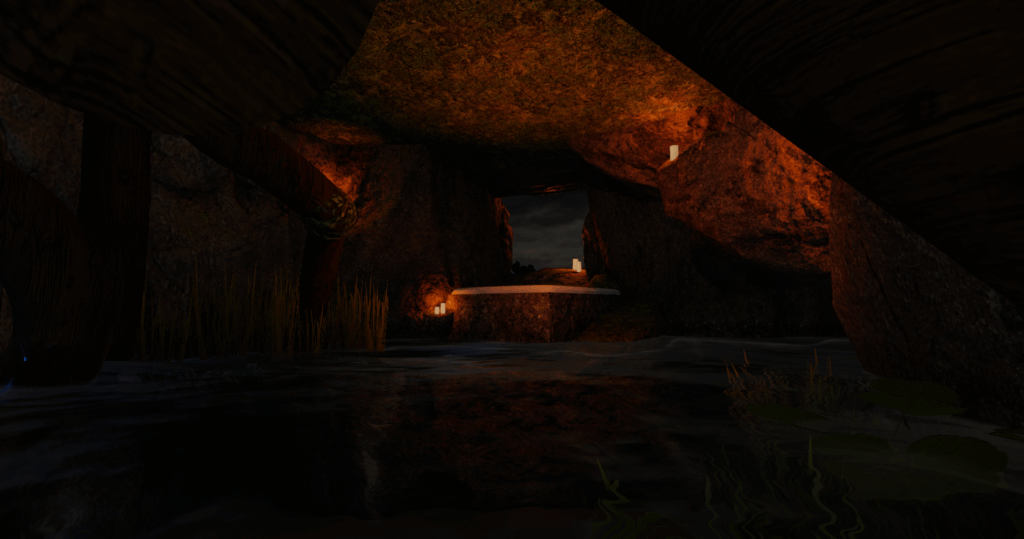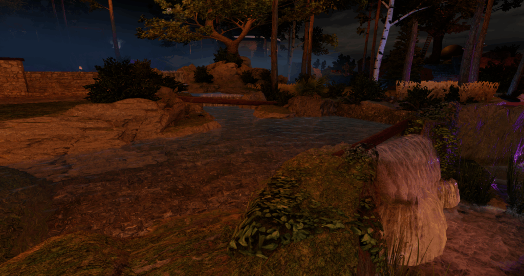 The Cascades area is an area still being renewed but works are underway with new features and falls. Gone is the lodge house that sat at the bottom, but I did work to keep plenty of spaces to accommodate friends and lovers. A Sauna, a Roman-style building and an overlook are nestled in and around the Cascades.