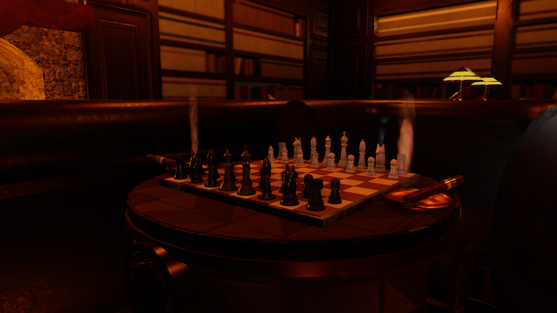 The Chess table in the room is more than just for looks. Anyone can play by using the following info to setup and play a game against anyone in the room.